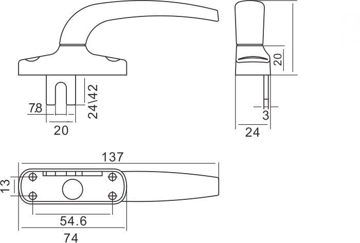 HZZS-8024 Small two-point locking handle E (points left.right) zinc fork