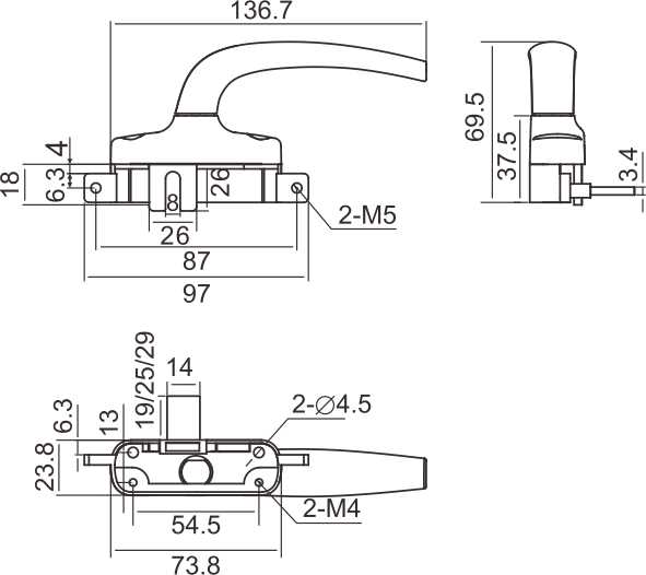 HZZS-8026 Small two-point locking handle C (points left. right)